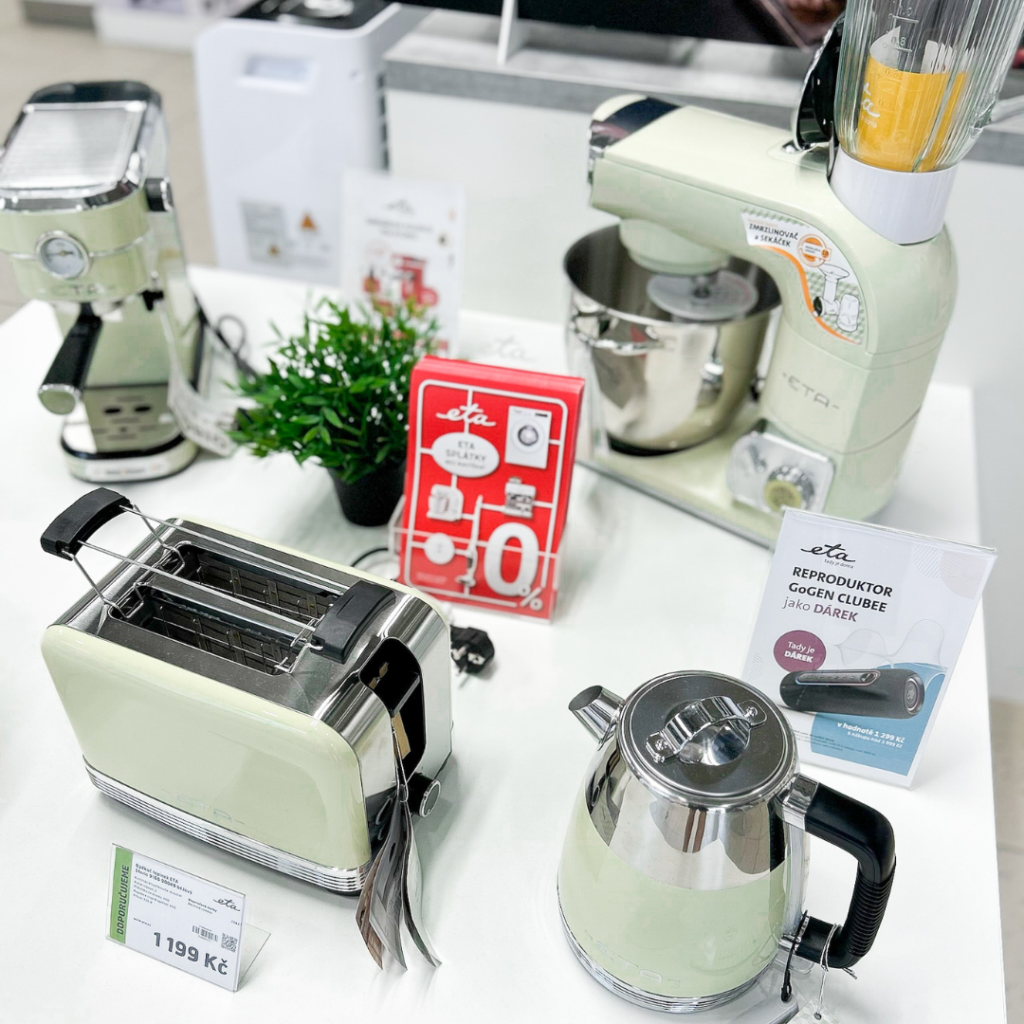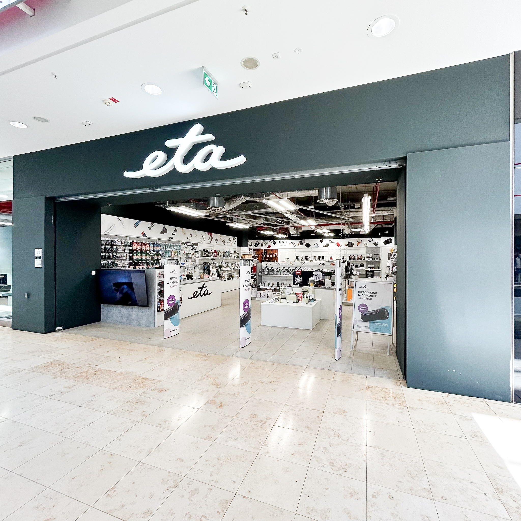 Značkovou prodejnu ETA najdete hned vedle elektro DATART v 1.patře našeho OC